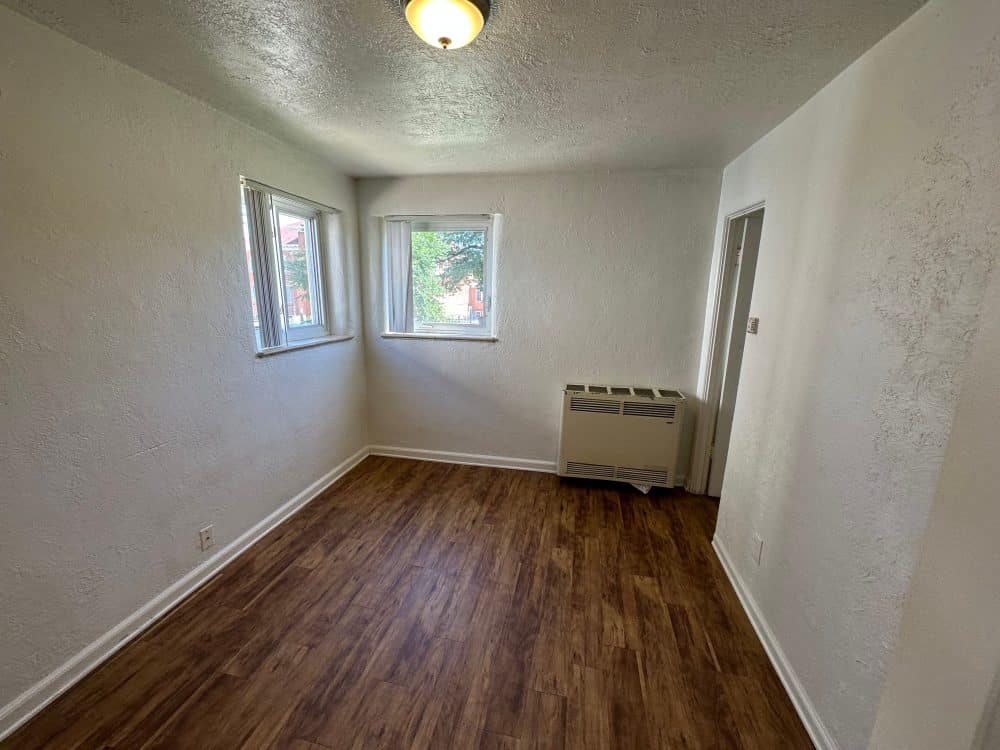 Apartments directly across from CU’s campus. Beautiful brick building featuring hardwood floors, updated kitchens, common area on-site laundry, free off-street parking, secured common entrances and each unit has a walk-in bedroom closet as well as a living room storage closet. Natural light in every room.
